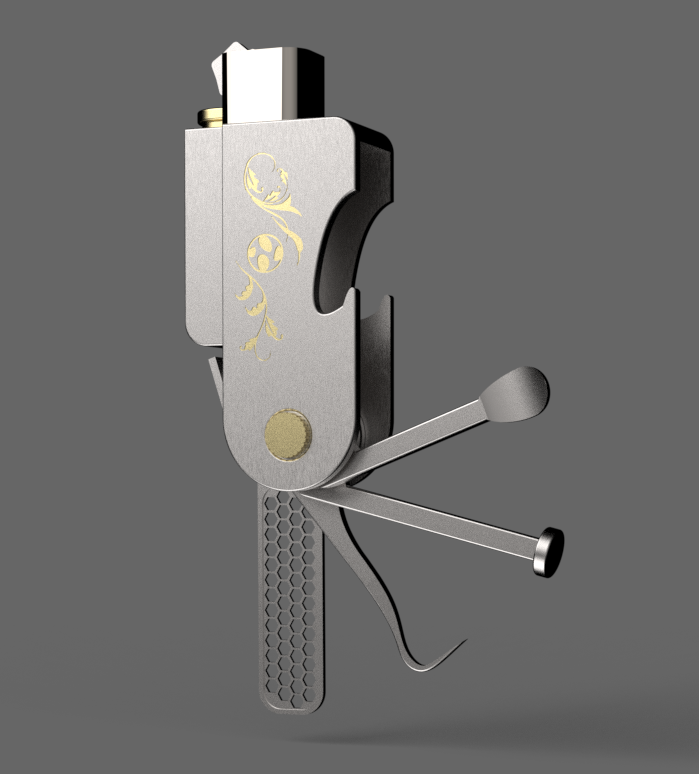 Showcase of original lighter multi-tool meant as an all-in-one solution for self reliant smkokers. Built in Rhino3D, rendered in Keyshot, and assembled in Adobe Premier, 2025.