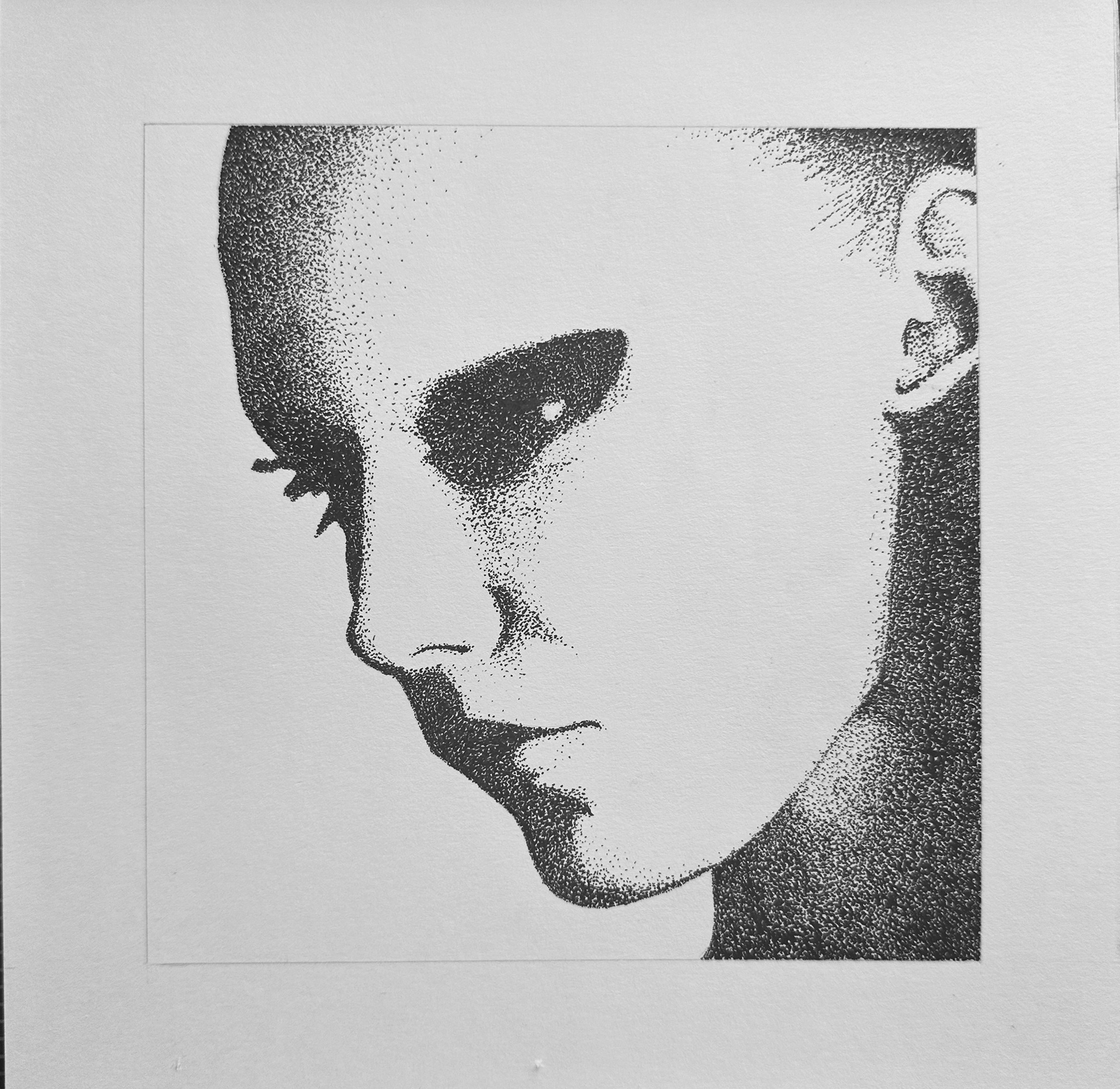 Glare, Pen and ink stippling on bristol board, 2024.