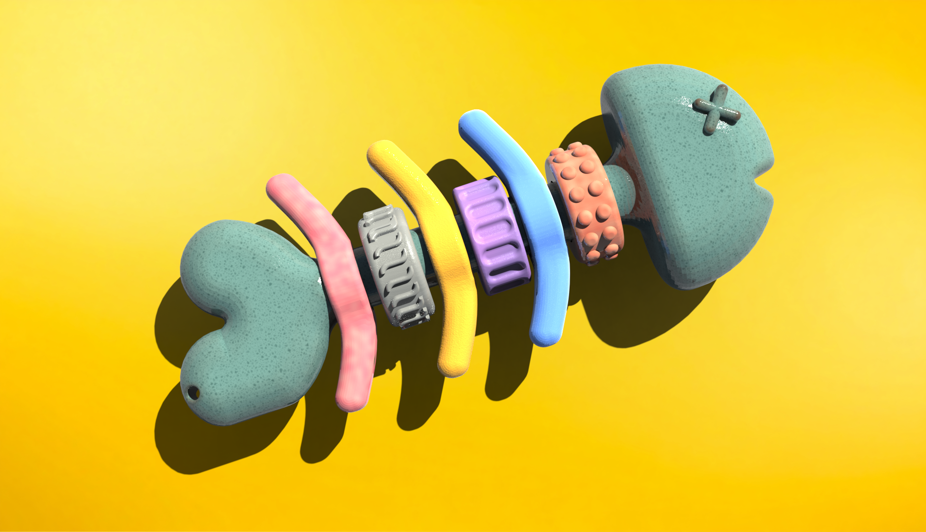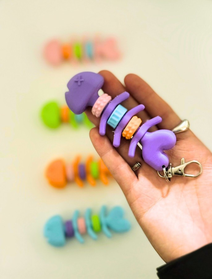 This 3d printed prototype showcases some of the fidget mechanisms like the discs and bones along the fish's spine. The compact design allows for portability to make sure you have your lure everywhere you go.